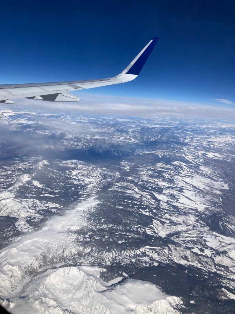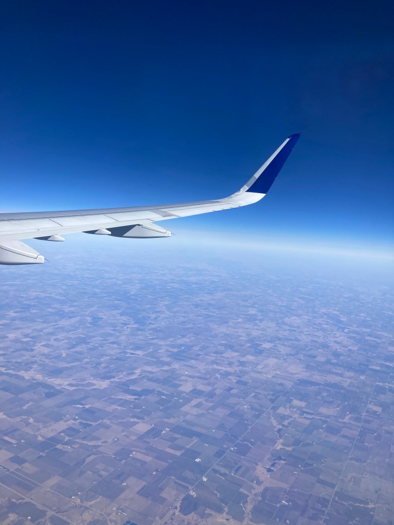On the plane at least, everyone was nicely masked up and looked happy to be traveling again. Clarence handled my digital boarding pass with aplomb, and on the plane I had a funny moment where I thought the woman seated near me was wearing a sweatshirt that said Fort Something (it actually said Feel Something). Where is Fort Something, I wondered? Sounds like Florida to me.