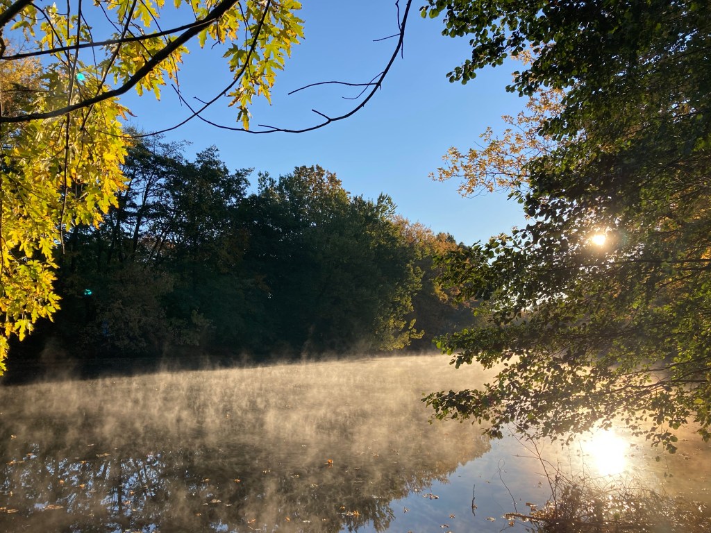 But in this case I didn’t try to go back to bed, but instead took a drive along the Mystic River near my house. In many seasons and times of day the river looks unremarkable, and familiarity dulls the senses. But on this morning, sharply cooler than the day before, icy mist clenched the warmer waters. It pulled me in, and pulled me over.