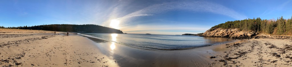 I do of course still advocate seeking out places known for their beauty. For Veteran’s Day, which she had off from school, my younger daughter and I watched the sunrise from Cadillac Mountain in Acadia National Park, my first time there since June.